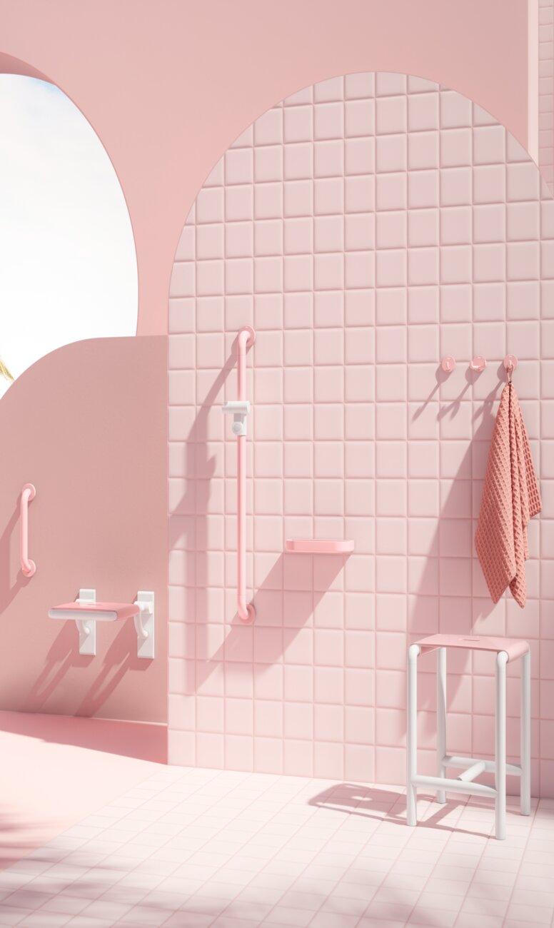 Neben dem außergewöhnlichen Design punkten die HEWI-Produkte mit durchdachter Funktionalität. Besonders barrierefreie Lösungen stehen im Fokus, um den Komfort für alle NutzerInnen zu erhöhen. Die Zusammenarbeit zwischen HEWI und Mattel unterstreicht den gemeinsamen Anspruch, Design für alle zugänglich zu machen. Hygienische, langlebige Materialien machen die Produkte besonders pflegeleicht und sorgen für eine nachhaltige Nutzung – sei es im privaten Barbie Badezimmer oder im generationsübergreifenden rosa Familienbad.