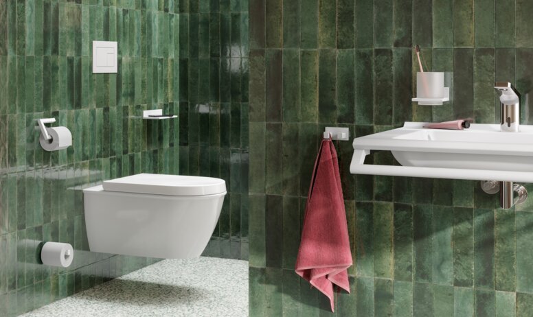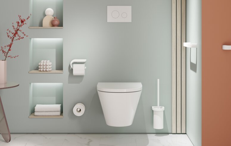 System 800 in der Trendfarbe kombiniert sanfte, organische Formen mit einem schlichten, modernen Design. Die klaren Linien und harmonischen Rundungen verleihen jedem Badezimmer eine elegante Note. Diese Accessoires bieten eine perfekte Mischung aus Ästhetik und Funktionalität und eignen sich hervorragend für eine zeitgemäße und ansprechende Badeinrichtung. Der modulare Aufbau von System 800 ermöglicht dir vielseitige Kombinationsmöglichkeiten, sodass du dein Bad ganz nach individuellen Wünschen gestalten kannst. Die Produktserie umfasst Accessoires für Waschtisch, WC und Dusche sowie barrierefreie Produkte.
