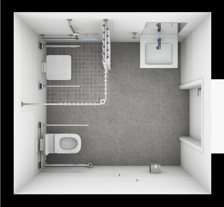 - Waschtische und WC in angepasster Höhe: Für komfortable Nutzung im Sitzen