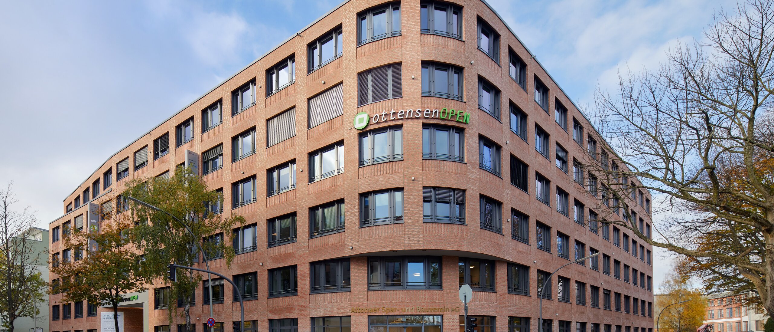 The ottensenOpen office building has an above-ground area of approx. 12,600 square metres. The building was deliberately designed in such a way that the space can be used very flexibly and different sized units can be formed as required. Thus, use is possible both in the form of individual and team offices as well as in the form of open work areas. The housing cooperative Altonaer Spar- und Bauverein has set up its new office on the ground floor and parts of the first floor.