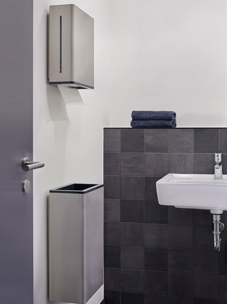 The architects chose the Range 805 from HEWI for the barrier-free sanitary rooms. The reduced design of Series 805 allows for a clear room setting. Down to the smallest detail, this series shows that good design and intelligent functions form a unity. For example, the functional area of the dispenser systems is made of high-quality polyamide with a colour contrast.