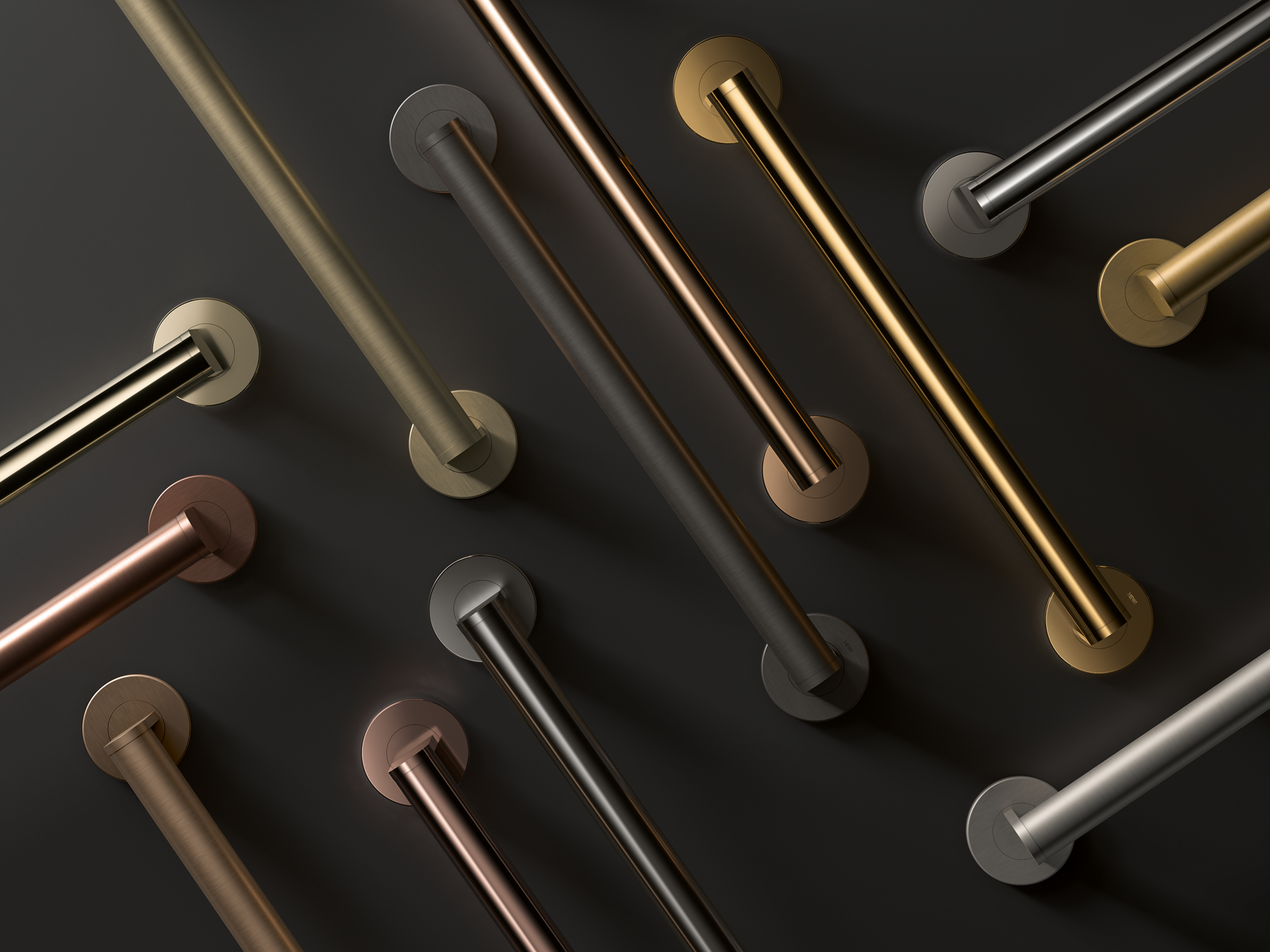 Available in stainless steel, chrome, with a powder-coated or PVD finish, the accessories can be combined with all System 900 products and enable a consistent design.