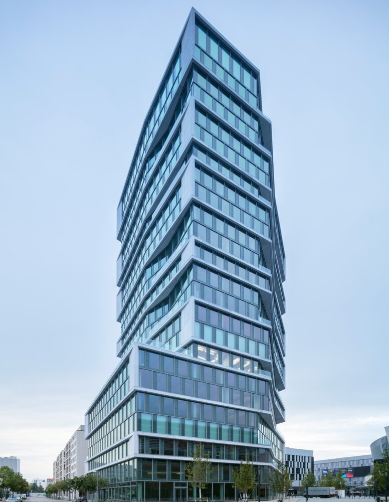 Het Berlijnse architectenbureau Gewers Pudewill realiseerde een fascinerend gebouw dat communiceert met zijn creatieve en inspirerende omgeving. De kantoortoren, die in 2022 werd voltooid, is heel ‘helder’ doordat er bewust minder begon en glas is gebruikt, waardoor hij een zekere - heel bewuste - hardheid krijgt. Tegelijkertijd oogt de architectuur levendig en extravagant door de sterke vouwen van de gevel.